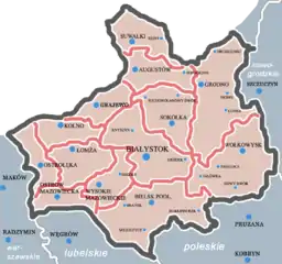 Counties of the Białystok Voivodeship from 1919–1921 and 1922–1939.
