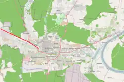 Grunwaldzka street is mentioned on an 1855 address book of Bromberg,[1] but appears as early as 1827 as a path to Nakło nad Notecią.[2] On an 1857 map, then on an 1876 city map the axis is mentioned as a Berliner Chaussee[3] or Highway to Berlin. At that time, it appears as an extension of the Berliner Straße (today's Swiętej Trojcy street) to the west. In 1851, the railway from Berlin to Kaliningrad -via Bromberg- is built along that path. In 1895, a narrow-gauge railway from Bydgoszcz to Koronowo was laid, with a station on Grunwaldzka street, Bydgoszcz Wąskotorowa, linked to the city tram network in 1898. The railway did not survive WWII and is now operated for touristic purposes between two villages west of Nakło: railtracks on Grunwaldzka were pulled part in 1969. The tramway line in the street has been dismantled in 1984.[4]