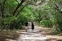 Family walking on one of GTM Research Reserve's trails