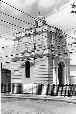 The Guzmán Family Pantheon (Spanish: Panteón de la Familia Guzmán), also known as the Guzmán Hermitage (Ermita Guzmán), is a single story, lime-stuccoed, brick masonry funerary chapel located in Humacao Pueblo (downtown Humacao), in the Puerto Rican municipality of the same name. The structure was built in 1864 the Eclectic style, with Classic, Renaissance and Exotic architectural elements.[1]