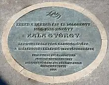 Upon his death on 31 July 1937, Zala was given a state funeral and buried at Kerepesi Cemetery, with a tombstone made by Miklós Ligeti.[2] The Hungarian National Gallery today is in possession of some 30 of Zala's works.[3] A commemorative plaque to Zala is embedded in the pavement outside his former villa in Budapest.