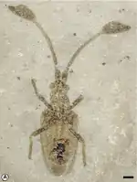 - 1 2 3 4 5 6 7 8 9 Wappler, T.; Guilbert, E.; Labandeira, C.C.; Hörnschemeyer, T.; Wedmann, S. (2015). "Morphological and Behavioral Convergence in Extinct and Extant Bugs: The Systematics and Biology of a New Unusual Fossil Lace Bug from the Eocene". PLOS ONE. 10 (8): 1–17. Bibcode:2015PLoSO..1033330W. doi:10.1371/journal.pone.0133330. PMC 4534043. PMID 26267108.