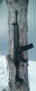 The C93 is a civilian version of the HK93 created by Century International Arms, Inc.[1] It comes with an 18.9-or-16.25-inch (480 or 413 mm) barrel with a 1:9 twist ratio. A carrying handle and 40-round magazine are standard. Advertised weight is 8.2 lb (3.7 kg). The C-93 is built from Thai Type-11 parts kits using an American made barrel and other miscellaneous American parts.