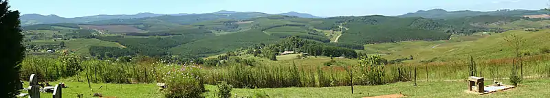 Frequent mists and relatively high rainfall have created a lush vegetation with afromontane forest patches occupying the kloofs (gullies) which dot the grasslands and surrounding mountains. However, large areas of rare, and botanically diverse, grassland (Woodbush Granite Grassland) have been planted to timber (primarily timber for pulping). These monoculture plantations extract a great deal of water and the resulting water shortages downstream (in the Kruger National Park and Mozambique) are cause for concern. A local volunteer group, FROHG (Friends of the Haenertsburg Grasslands) helps to conserve the indigenous flora and fauna. Funds are raised to create educational materials, maintain a hiking trail, remove alien invasive plants and alert the authorities to illegal developments like bulldozing for pipelines, fencing and even squatting.