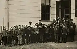 ![]() Wittgenstein (front, seventh right) with his pupils, taken in Puchberg am Schneeberg, spring 1923 | |