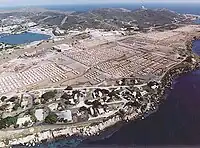 The Haitian refugee crisis, which began in 1991, saw the US Coast Guard collect Haitian refugees and take them to a refugee camp at Guantanamo Bay.[1] They were fleeing by boat after Jean-Bertrand Aristide, the democratically elected president of Haiti, was overthrown and the military government was persecuting his followers.[2] The first camp reached a maximum of 12,500 people.[3] It was then reduced to 270 refugees who either had HIV or were related to someone who did.[4] The reduction was the result of the US policy adopting a strict policy of repatriation for both those found at sea and most of those living in Guantanamo.[5] The HIV+ refugees were quarantined in a section of the military base known as Camp Bulkeley and faced human rights violations.[3] They were brought to the United States after US District Judge Sterling Johnson Jr. ruled the camp was an "HIV prison camp."[6][1]