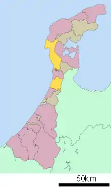 Map showing original extent of Hakui District in Ishikawa Prefecture: