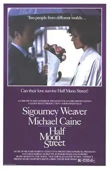 Half Moon Street is a 1986 British-American erotic thriller film directed by Bob Swaim and starring Sigourney Weaver, Michael Caine, Keith Buckley, and P. J. Kavanagh. The film is about an American woman working at a British escort service who becomes involved in the political intrigues surrounding one of her clients.
