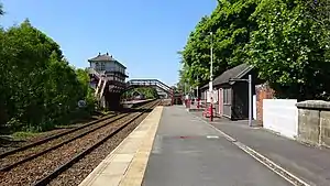 The station's signal box, constructed in 1901 by the North Eastern Railway, was taken out of use in 1993, following re-signalling to colour lights.[6] It was replaced by a smaller prefabricated signal box, which is located around 145 yards (133 m) to the west of the former.