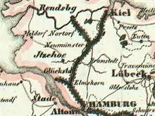 The Hamburg-Altona–Kiel railway (historic name: The King Christian VIII Baltic Railway[lower-alpha 1]) is one of the most important main line railways of the states of Schleswig-Holstein and Hamburg in Northern Germany. The line runs through the region of Holstein and connects the cities of Hamburg, Elmshorn, Neumünster and Kiel.[2] The 105 km (65 mi) long standard gauge double track electrified railway line is now owned by DB Netz.