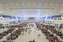 A new station was built on the site. It officially opened on 1 July 2013, in conjunction with the opening of the Hangzhou–Ningbo High-Speed Railway and Nanjing–Hangzhou Passenger Railway. The station also serves the Shanghai–Hangzhou Passenger Railway. It has 30 railway tracks, and stations for Hangzhou Metro lines 1 and 4.[5] A coach station and bus terminals are also part of the new transit hub.[4]