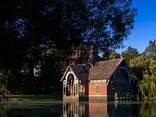 Construction work resumed in 1946, and on August 6, 1947, the Parks Department announced that row boating would resume, the concession to be run out of the new boathouse, "designed in modified victorian style in harmony with the architecture of other structures in the park."[17]
