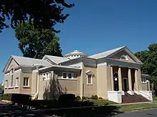 The First Church of Christ, Scientist was established in Davenport in 1892 by 16 practitioners as a branch of the mother church in Boston.[2] They built this building, which was designed by the prominent Davenport architectural firm of Clausen & Clausen, in 1912. A Christian Science Reading Room was opened downtown. First Church moved in the 1970s to a new facility on Fairhaven Road in Davenport.
