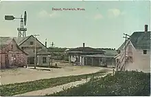 The Chatham Railroad opened between Harwich and Chatham on November 21, 1887.[4][5] It was immediately leased by the Old Colony Railroad, which controlled all rail lines on Cape Cod, as its Chatham Branch.[1][6] The Old Colony was leased by the New York, New Haven and Hartford Railroad in 1893.[1] A turntable, wye, and water tower were located at Harwich; a new freight house was built adjacent to the station in the 1890s.[7]