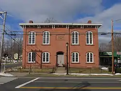 The historic district encompasses a section of Hazard Avenue (Connecticut Route 190 and adjacent roads, as well as a now-parklike section of the banks of the Scantic River, where the operations of the Hazard Powder Company were located. The district is dominated by four public buildings constructed of brick with brownstone trim: a public school, the Hazardville Institute, the former St. Mary's Episcopal Church, now incorporated as Holy Trinity Episcopal Church,[3] and the Hazardville United Methodist Church.[2]: 33–34 The school and the institute are both of Italian Renaissance Revival design and were built in 1864 and 1869, respectively. The Episcopal church is a Gothic Revival structure built in 1863. The Methodist church, built in 1872, is in the Romanesque Revival style.[2]: 29