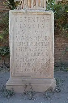 Inscription for statue of his sister Terentia Flavola, the chief Vestal