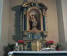 In the course of the French Revolution, the church was desecrated in 1793 and pilgrimages came to a standstill. The new revolutionary owners temporarily used it as a guard room and powder magazine. Ultimately, the chapel was reconsecrated in 1804, and regular services resumed. A quarter century later in 1829, the famous votive picture "Our Lady with the Arrows" arrived at the chapel from the Gräfinthal monastery.[2] Pilgrimage to the chapel was revived in 1913 - this time with a focus on the votive image of the Madonna.[2] Since that time, the little church has been one of the most famous pilgrimage sites in the Roman Catholic Diocese of Speyer.