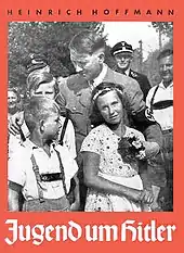 During the Third Reich Hoffmann assembled many photo-books on Hitler, such as The Hitler Nobody Knows (1933) a book that Ron Rosenbaum calls "central to Hitler's extremely shrewd, extremely well-controlled effort to manipulate his image ... to turn his notoriously non-Nordic-looking foreignness, his much-remarked-upon strangeness, into assets to his charisma"[17] and Jugend um Hitler ("Youth Around Hitler") in 1934. In 1938 Hoffmann wrote three books, Hitler in Italy, Hitler befreit Sudetenland ("Hitler Liberates Sudetenland") and Hitler in seiner Heimat ("Hitler in his Homeland"). His Mit Hitler im Westen ("With Hitler in the West") was published in 1940. His final book of this period, Das Antlitz des Führers ("The Face of the Führer"), was written shortly before the outbreak of the Second World War. In 1936 he had effectively seized control of stereographer Otto Schönstein's publishing house, Raumbild-Verlag, which effectively put him in charge of all mass-market stereoscopic (3D) photography in Germany until the end of the Second World War.[33]