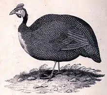 - ↑ Martínez, I.; Kirwan, G.M. (2020). Del Hoyo, Josep; Elliott, Andrew; Sargatal, Jordi; Christie, David; De Juana, Eduardo (eds.). "Helmeted Guineafowl (Numida meleagris)". Handbook of the Birds of the World Alive. Lynx Edicions, Barcelona. doi:10.2173/bow.helgui.01. S2CID 216362040. Retrieved 18 October 2017.