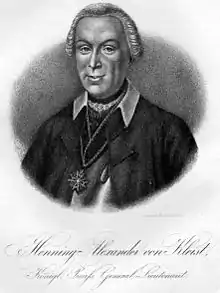 Henning Alexander von Kleist (4 June 1707 in Raddatz–20 January 1784 in Spandau) was a Prussian Lieutenant-General and Chief of Fusiliers. He was a winner of the Order Pour le Merite and hereditary lord of properties at Juchow, Zammenz and Falkenhagen. He was also Governor of the Spandau Citadel.