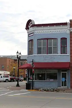 Henry County Savings Bank is a historic building located in Mount Pleasant, Iowa, United States. Because this two story, brick Italianate structure was built specifically as a bank, it features a chamfered corner, which was commonly used to designate a bank in the last quarter of the 19th century.[2] Other features typical of an Italianate commercial building include segmental arched windows, a corbeled brick frieze, and a bracketed metal cornice. The building was listed on the National Register of Historic Places in 1991.[1]