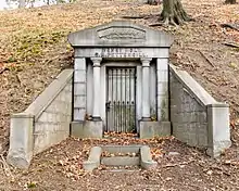 The entrance to Henry Holt's crypt at The Green-Wood Cemetery, Brooklyn, NY