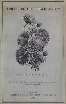 Henry's great-grandfather Philippe Victoire de Vilmorin 1746-1804 and his wife's father, Pierre Andrieux, chief seed supplier and botanist to King Louis XV, revived an old seed-growing firm and named it Vilmorin-Andrieux in 1774. Henry headed the firm from 1873 and was the first to hybridise wheat. As a result, he introduced 18 strains of high-yield wheat while continuing his father’s work on the breeding of sugar beets,[2] and publishing Les meilleurs blés ('The Best Wheat') in 1880 with descriptions of the best winter and spring wheat varieties and their cultivation. This was followed by a supplement published by Vilmorin-Andrieux et Cie in 1909. He also produced a small book Flowers of the French Riviera in 1893.[3]