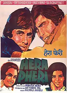 Hera Pheri (transl. Foul play) is a 1976 Hindi masala film directed by Prakash Mehra and starring Amitabh Bachchan, Saira Banu, Vinod Khanna, Sulakshana Pandit, Shreeram Lagoo and Asrani. The film's music is by Kalyanji Anandji and the lyrics were by Anjaan, Indeevar.