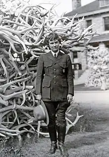 ![]() Baggley at Mammoth Hot Springs Visitor Center Antlerhouse circa 1931 | |
