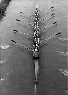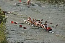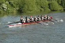 Hertford has a strong rowing history,[1] and this is reflected by the active role that the boat club society plays in the running of the club. Open to anyone with an interest or connection with Hertford rowing, the society is a growing organisation.[8] The highlight of the year is the AGM. This is followed by the annual Society boat race, pitting past rowers against the current 1st VIII's, and then a formal dinner in Hall. Society members also receive the "Blades" magazine.[9] This is published several times a year and keeps society members up to date with the recent fortunes of the club.