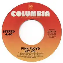 "Hey You" is a power ballad by the English rock band Pink Floyd,[1] released on their 1979 double album The Wall.[2] It also appeared as the B-side to the "Comfortably Numb" single in 1980. The song, along with "The Show Must Go On", was edited out of Pink Floyd – The Wall to prevent the film from running too long; however, a rough version is available as an extra on the 25th Anniversary Edition DVD of The Wall.
