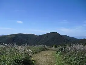 ![]() Ikenodan (left) and Mount Tateeboshi (center) and Mount Hiba (background right) as seen from the southeast. Taken from Mount Ryuo. | |
