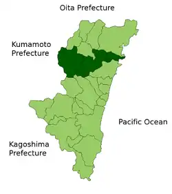 Higashiusuki (東臼杵郡, Higashiusuki-gun) is a district located in Miyazaki Prefecture, Japan.
