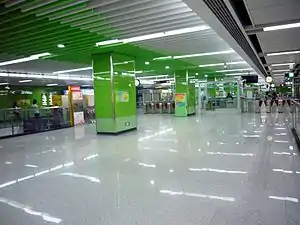 Higher Education Mega Center North Station (simplified Chinese: 大学城北站; traditional Chinese: 大學城北站; Cantonese Yale: Daaihhohksìhng Bāk Jaahm) is a station of Line 4 of the Guangzhou Metro. It started operations on 26 December 2005. It is located at the underground of the north of Guangzhou Higher Education Mega Center, located on the Xiaoguwei Island in Xiaoguwei Subdistrict, Panyu District.[1]
