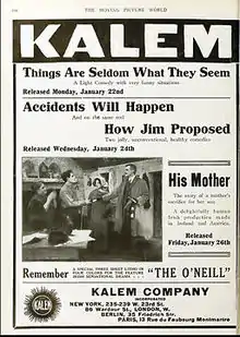![]() Advertising published by The Moving Picture World, Vol 11 p 102. | |