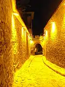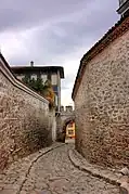 Hisar Kapia (from Turkish: Hisar Kapı meaning "Castle Gate") is a medieval gate in Plovdiv's old town and one of the most famous tourist sights in the city. The gate was built in the 11th century AD over the foundations of a gate from Roman times (probably from the 2nd century AD). Hisar Kapia is one of the three entrances (Eastern, Northern and Southern) to the acropolis of ancient Plovdiv. During the rule of the Ottoman empire revival houses were embedded in the remains of the old stone walls around the gate.[1]
