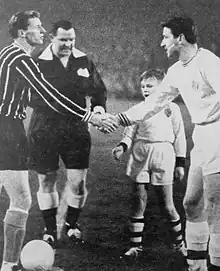Bath City captain Tony Book shaking hands with Bolton captain in an FA cup tie in 1964, in front of 26,000