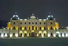 In 1661 it was given to Stefan Czarniecki as a reward for his service in the victory over the Swedes. Four years later, as a dowry of his daughter Aleksandra who married Jan Klemens Branicki, thus passing into the hands of the Branicki family.[5][6] In 1692 Stefan Mikołaj Branicki, the son of Jan Klemens Branicki (Marshal of the Crown Court), obtained the rights to the city of Białystok from King John III Sobieski and built Branicki Palace in the city on the foundations of former defensive castle of Wiesiołowskis' family.[7] In the second half of the 18th century the ownership of the city was inherited by Field Crown Hetman Jan Klemens Branicki.[1] It was he who transformed the previously existing palace built by his father into the magnificent residence of a great noble.[8][9]