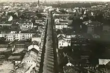 An urban plan was developed for the systematic development of the city in and was approved in 1938.[69] it was assumed among others location of industrial centers in Fasty, Starosielce and Dojlidy, delineation of transit roads on the east–west and north–south axes, and a brick housing estate was constructed on the site of the poor Jewish district of Chanajki. The Aleksander Węgierki Dramatic Theatre was completed in 1938. green areas were regulated, and parks were marked out such as Planty Park.[70] Throughout the interwar period it was located in at the corner of today's Kilińskiego and Pałacowa Streets, the neo-Baroque "Ritz" Hotel, which played the role trade and market town hall (with a guard observation tower located on the tower).[65]