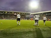 Fulham (White) playing Portsmouth (Blue) in front of Fulham fans in the Hammersmith End.