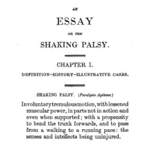9. 1 2 Louis ED (November 1997). "The shaking palsy, the first forty-five years: a journey through the British literature". Mov. Disord. 12 (6): 1068–72. doi:10.1002/mds.870120638. PMID 9399240. S2CID 34630080.