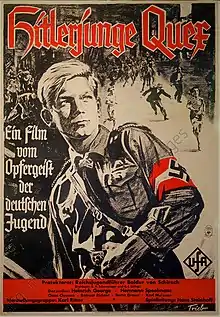 The film was produced in the Universum Film AG (Ufa) studios.[5] The plot was written by Bobby E. Lüthge and Karl Aloys Schenzinger, the author of the novel.[5] Produced by Karl Ritter,[5] it was supported by the Nazi leadership and produced for 320,000 reichsmarks[6] (equivalent to €1,483,357 in 2021) under the aegis of Baldur von Schirach.[7] The latter also wrote the lyrics for the Hitler Youth marching song "Vorwärts! Vorwärts! schmettern die hellen Fanfaren", better known by its refrain, Unsere Fahne flattert uns voran,[8] using an existing melody by Hans-Otto Borgmann, who was also responsible for the music.[5] The director was Hans Steinhoff.[5] For the film, the subtitle Ein Film vom Opfergeist der deutschen Jugend ("A film about the sacrificial spirit of German youth") was added to the novel's title.[5] The film has a length of 95 minutes (2,605 metres) and was premiered on 11 September 1933 at the Ufa-Phoebus Palace in Munich, and on 19 September at the Ufa-Palast am Zoo in Berlin.[5] It was one of three films about Nazi martyrs in 1933, the other two being SA-Mann Brand and Hans Westmar.[6]