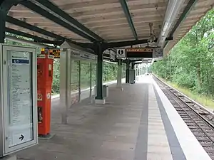 Hoisbüttel is a station on the Ohlstedt branch of the Hamburg U-Bahn line U1. The station is located in Ammersbek in Schleswig-Holstein, Germany.