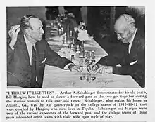 Hargiss and Arthur Schabinger reminisce about the early days of the forward pass at a C of E reunion