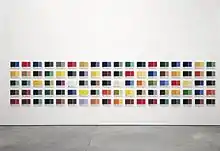 As Keining began looking for further abstract elements for pictures, script (letters) and text elements in particular played an important role. For the first time, names of brands and names of models of American car manufacturers appeared in his paintings. This was stimulated by a study visit to New York City. In 1999 Keining created a work of 90 pieces (Lukas colorplates): The relatively small paintings show all colour nuances of the well known producer of artist's paints; the producer’s specific names and numbers of the colours are integrated in the pictures thereby underscoring the use of text.