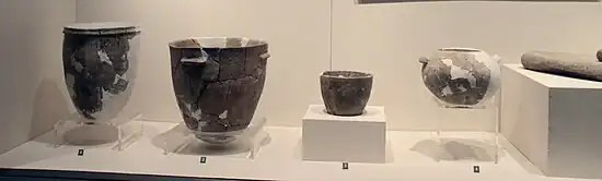 The Houli culture (6500–5500 BC[1]) was a Neolithic culture in Shandong, China. The people of the culture lived in square, semi-subterranean houses. The most commonly found artefacts at Houli sites are pottery and stone tools.[2] Jade artefacts and bone, antler, shell tools were also found at Houli sites.[2] While the remains of domesticated dogs and pigs in the early stages of domestication were found at some sites associated with the culture, the people of the Houli culture relied mostly on hunting and fishing.[2] The remains of rice, broomcorn millet, and foxtail millet were discovered at Houli sites.[2]