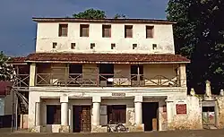 The House of Columns dates from the late nineteenth century, taking its name from the thick columns at its front, supporting the upper floors. The building is known to predate 1891, in which year it was photographed by William Walter Augustine Fitzgerald from the deck of the Henry Wright: a coastal steamer belonging the Imperial British East Africa Company.[2] At that time the house was occupied by the officer in charge of Malindi District, James Bell Smith.[3] Bell Smith hosted Fitzgerald in the house for several days in July 1891 while Fitzgerald explored Malindi, visiting among other things the Vasco da Gama pillar.[4]