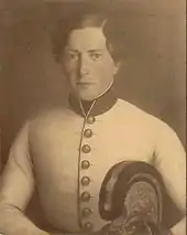 Albert Conrad Soterius von Sachsenheim was born on 7 May 1824. After graduating from the Hermannstadt (Sibiu) gymnasium, he pursued a military career promoted up to Lieutenant in 1847. During the Hungarian Revolution of 1848, he was involved in 19 battles and skirmishes. He retired from the army in 1860 achieving the rank of Squadron Commandant. Afterwards, Albert took up residence in Mediasch, the birthplace of his wife Jeanette Schaffendt, and started to engage in public life.[14]