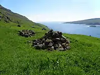 According to the Faroese Sagas and local tradition, the first Viking settler on Suðuroy established a farm in Hov, which is said to be named after his pagan hof. His grave is at "undir Homrum" in Hov and is the only chieftain burial site to be found on the Faroes. Hov lies in the middle of the island and the area is flat and wide with a good view out to sea. This enabled Suðuroy's first settlers to follow exactly what was happening on the sea around.