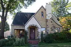 The Hunt House is a historic house at 707 West Center Street in Searcy, Arkansas. It is a 1+12-story wood-frame house, its exterior finished in brick, stucco, stone, and other materials. It is roughly T-shaped, with intersecting gable-roofed sections. The front-facing gable has the entry porch projecting from its left front, and a chimney to its right. Both are formed out of brick with randomly placed stone at the lower levels, and stuccoed brick at the upper levels. Built about 1935, it is one of Searcy's finer examples of English Revival architecture.[2]